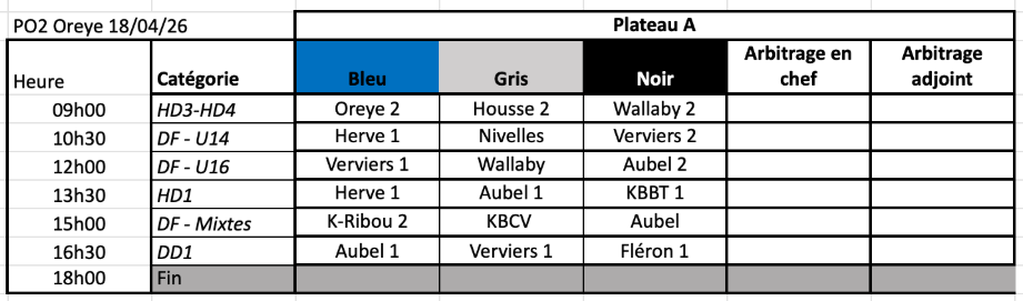 18 Avril 2026 (Oreye) PO2 & Demi-Finales